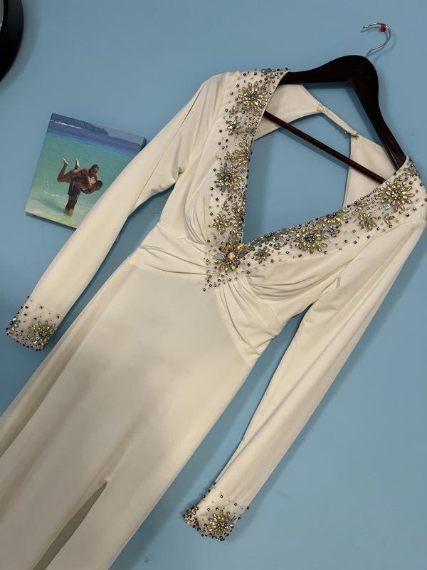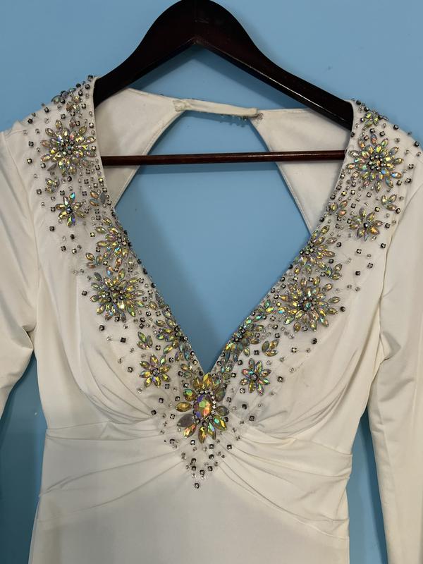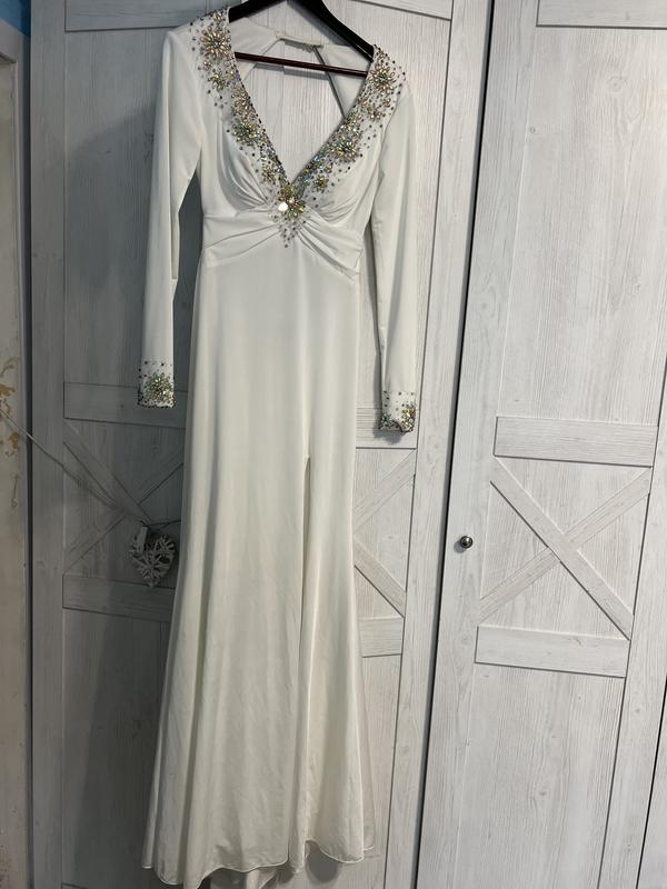 сукня jovani,оригінальна купляла в салоні весільних суконь,вдягена один раз в день розпису в Рагсі!вона дуже гарна і стильна,розріз від бедра розмір с-м,камінці всі на місці