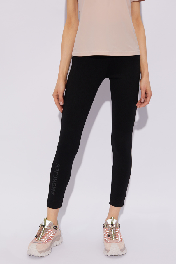 Black leggings from Moncler Grenoble, the ‘Day-Namic’ collection. Enriched by a tactile logo, this style features an elasticated waistband, long legs and a back zip pocket.