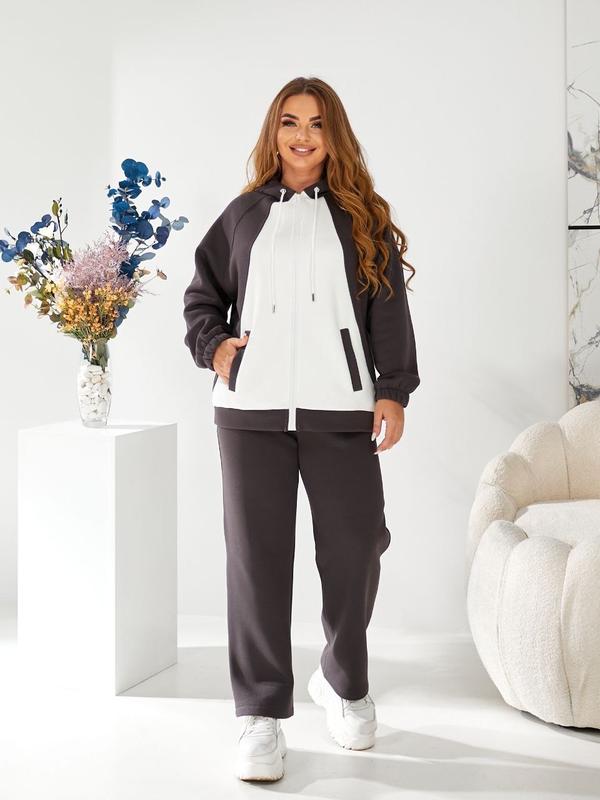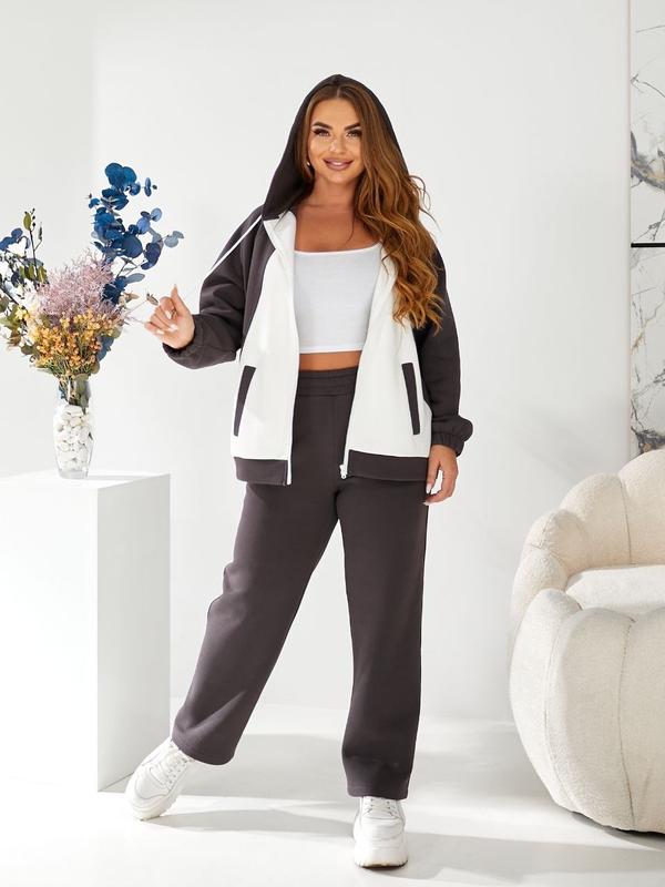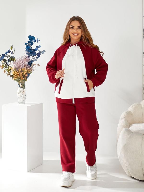 Модель 0225 Прогулочный костюм 48-50(S) 52-54(M) 56-58(L) Tкань: 3х-нитка на флисе Турция НЕ КАШЛАТИТСЯ Цвет: Марсала , Графит, Шоколад, Чёрный Кофта : ********** ОТ 123 131 139 ********** Дл.полочки 65 65 66 Дл.спинки 68 68 69 Дл.рукава от шеи 73 74 75 Брюки : ОТ 78 86 94 (+20) резинка ********** (+5) Дл.по боку 103 Дл.шаг 73 Ширина по низу 45 47 49 На Модели размер 48-50(S) Параметры модели: ОГ 108 ОТ 80 ОБ 113 РОСТ 173