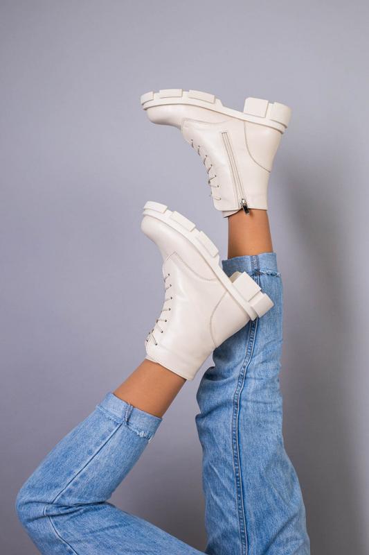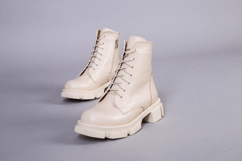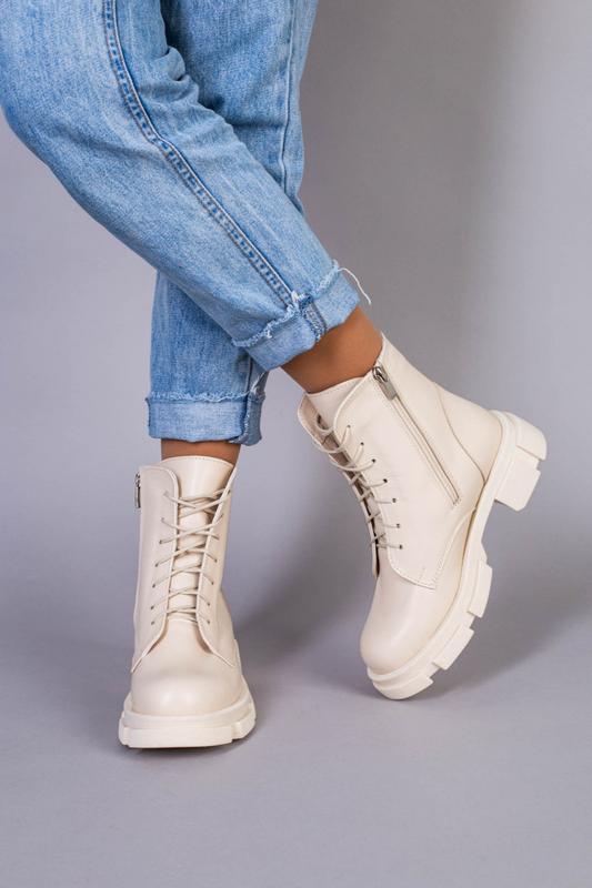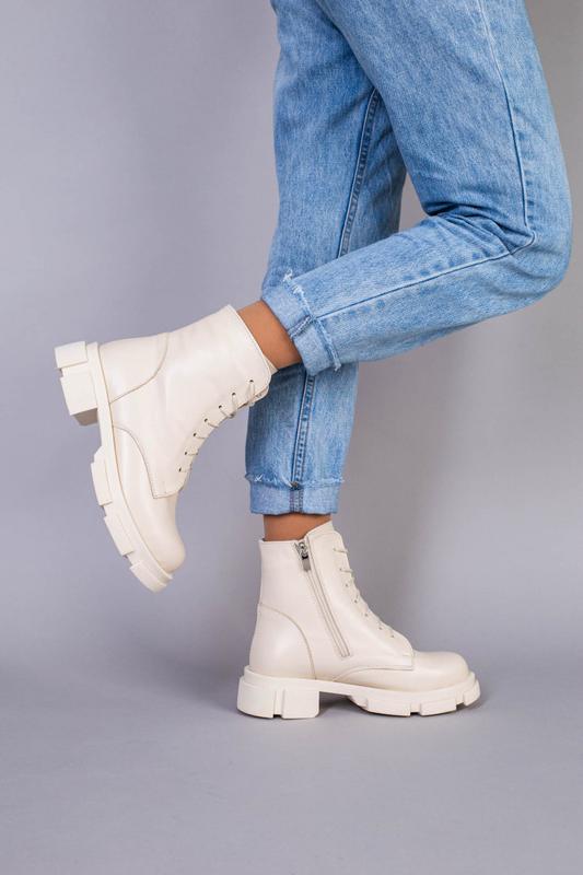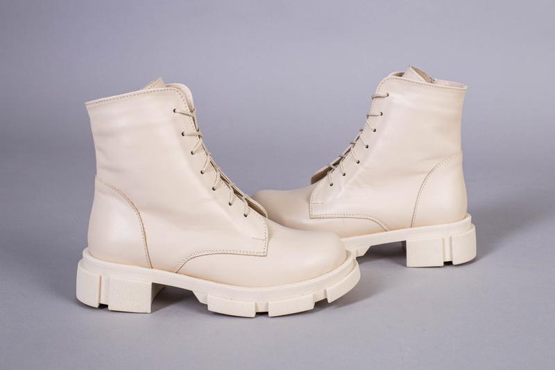 Женские зимние ботинки молочного цвета из натуральной кожи на натуральном меху. Подошва ТЭП высотой 2,5-4,5см. Высота без подошвы: 14см. Производитель: Украина. Данная модель также есть в белом и черном цветах. Размеры: 36-23см 39-25см