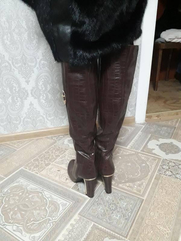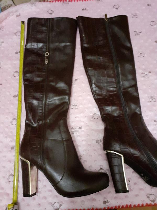 Высокие сапоги демисезонные Sergio Todzi 39 размер.Очень красиво смотрятся на ножке.Эко кожа,зад сапог имитация под крокодилью кожу,перед гладкая кожа. Длина сапог 47 см+ высота каблука около 9 см=56 см; полуобхват голенища -20см ; моя нога-17см полуобхват по икрам-18 см;мои икры-16 полуобхват по щиколотке-13 см,моя щиколотка -10 см стелька 26 см, моя нога по стельке 25,2 см,эти сапоги мне немного свободны,но комфортно. Обула один раз.Причина продажи -мои очень худые ноги,на мне сапоги болтаются. Цена 450грн. Пересылаю за ваш счет. Отвечу на вопросы.