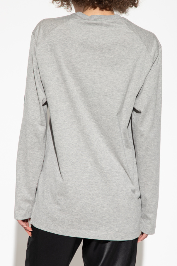 Grey crewneck T-shirt from Y-3 Yohji Yamamoto. Crafted from cotton, this style features long sleeves, side slits and a logo patch for brand recognition.