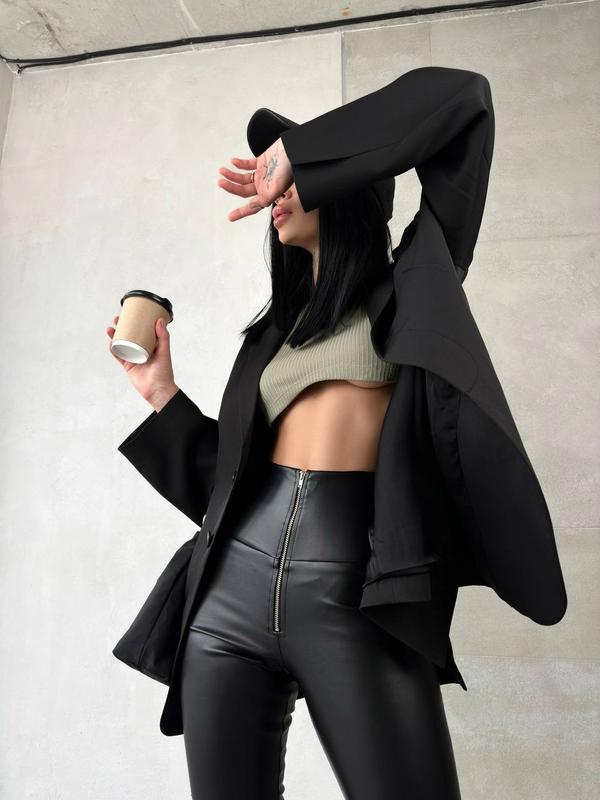 L 31 Лосіни з екошкіри Розмір : XS,S,M Ціна : 1099 грн B 83 Топ з трикотажу рубчік Розмір :XS-S,S-M Ціна : 649 грн B 85 Піджак оверсайз з костюмноі тканини Розмір :XS-М Ціна : 1199 грн F 54 Шубка з екохутра Розмір :XS-S ,S-M Ціна : 1799 грн Заміри лосін ХS Талія до 63 см Стегна до 93 см Довжина 98 см Заміри шубки XS-S Довжина 58 см Рукав 63 см Об’єи грудей до 110см Талія до 85 см Заміри топа XS-S Довжина 35 см Об‘єм грудей до 90 см С