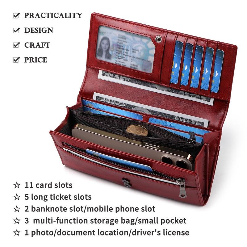 Женский кошелек из натуральной кожи Стильное женское портмоне изготовлено из натуральной качественной коровьей кожи. Благодаря прочной и надежной фурнитуре портмоне удобное и практичное в использовании. Множество внешних и внутренних карманов помогают упорядочить деньги и кредитки. В торце кошелька расположен карман, в котором удобно хранить монеты, ключи и различную мелочь. Внутри есть больше отделение для купюр, прозрачное отделение для фото или пропуска, много мест для кредитных карт и визиток. Характеристика Тип изделия: Кошелек Ширина 100 mm Высота 190 mm Толщина 40 mm Пол Женский Цвет Красный Стиль: Модный Состав Материала Кожа Перед отправкой весь товар проверяется на целостность и работоспособность. Отправка осуществляется в день оформление заказа. И будет доставлена от 1-2 рабочих дней.