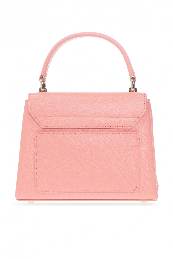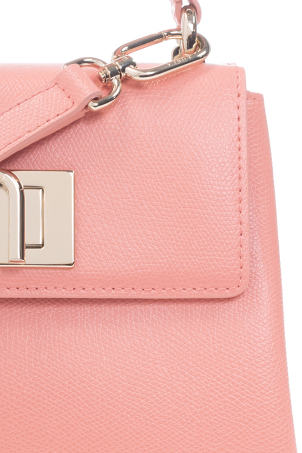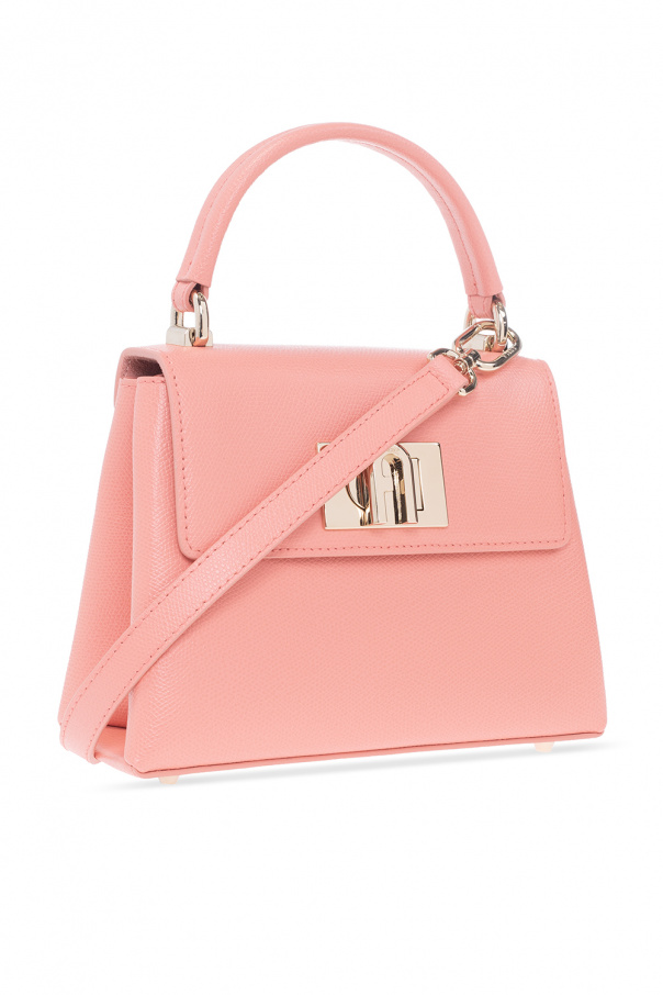 Pink ‘1927 Mini’ handbag from Furla. Made of grained Ares leather, this model features the label’s twist closure with the Arch logo, back pocket, short handle, detachable and adjustable strap, gold-tone metal hardware and one internal compartment with one slip pocket and one zip pocket.