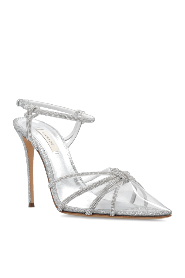 Silver-tone ‘C+C’ pumps from Casadei. Crafted from translucent plastic and finished with glistening straps, this model sits on a beige leather sole and features an adjustable buckle strap at the ankle.