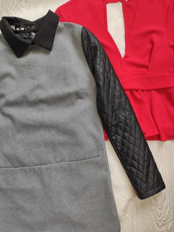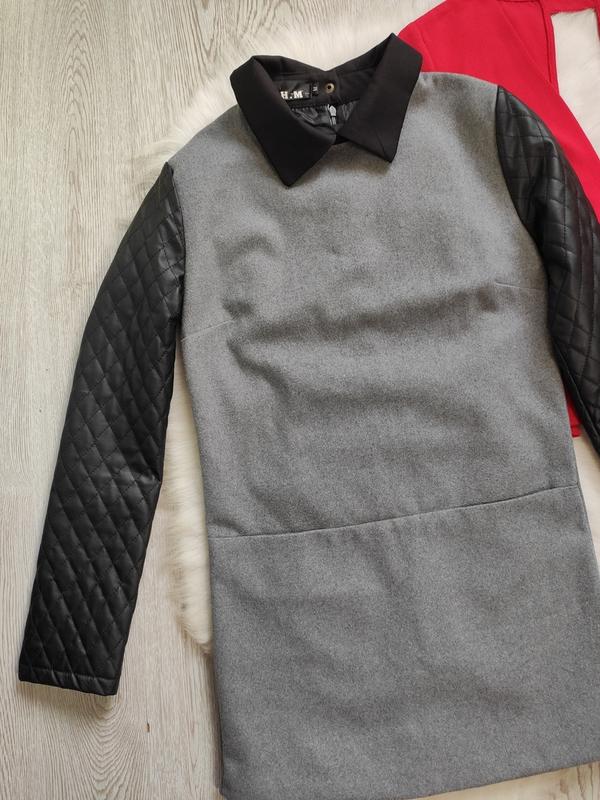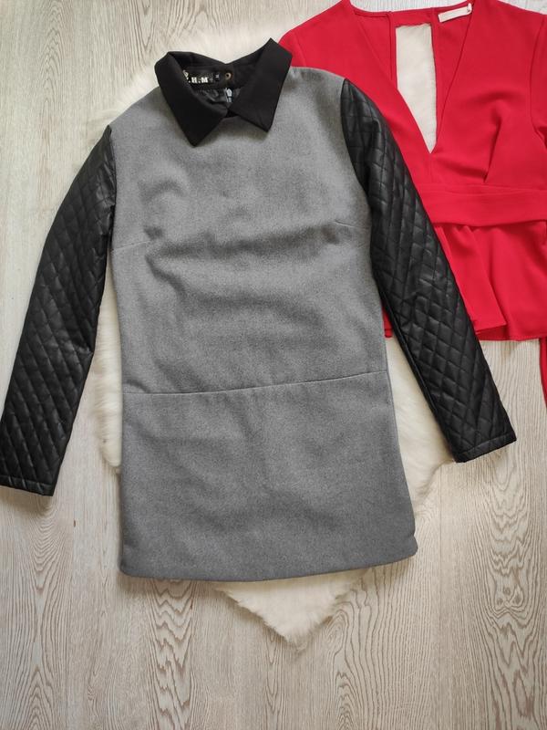 -💖 добавляй в избранное чтоб следить за ценой - ⭐фото на теле не делаю,простите) - ⭐замеры: полуобхват вещи от спокойного до растянутого состояния - ⭐читаем описание товара полностью: Теплое серое короткое платье с черными кожаными рукавами черным воротником фетр плотное меланж от YHM размер "6\\М" ПОГ 45-47 ПОТ 41-43 ПОБ 45-47 Длина 80 см Рукав 60 см Плечи 37-39 Состояние идеальное,плотный серый ,теплый материал по типу фетра с подкладкой и черный плотные эко кожаные рукава,оригинальные карманы спереди,по спинке скрытая молния. Цена 599 грн