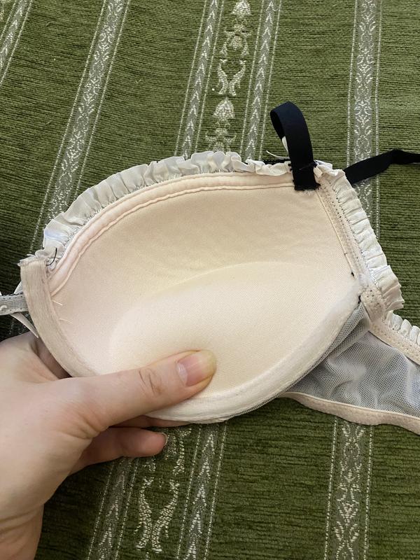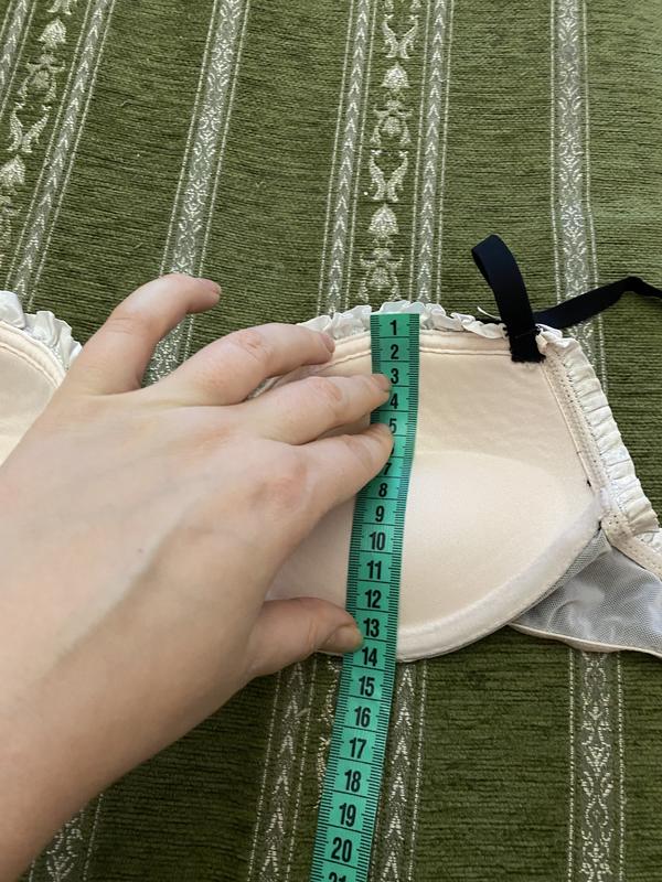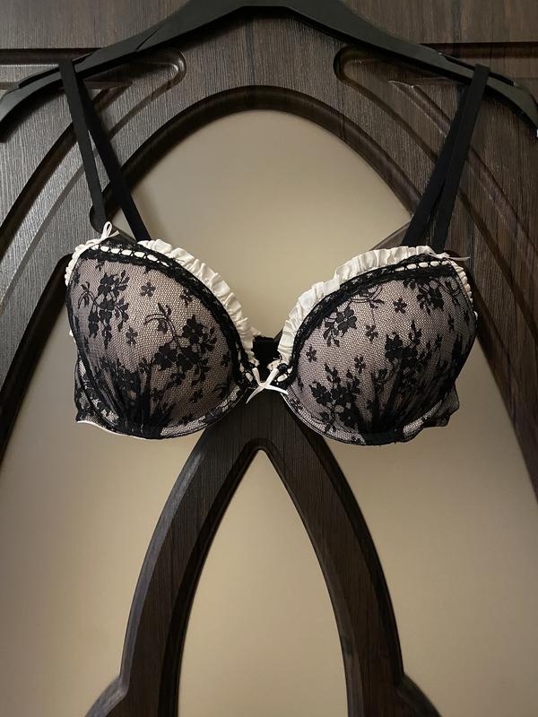 Шикарный, ажурный, нереально красивый, бюстгальтер, нежно кремового цвета, с черным, ажуром, с низа имеется пуш ап в 2 см👌. Очень удобный на каждый день, красиво, и сексуально выглядит на груди. Брендовив фирмы: Victoria ́s Secret. Sexy little things. Производитель, индонезия. Замеры чашки бюстгальтера: ширина 17 см длина 12 см. Размер указан: 34C/75C. Подходит 75В. Состав: нейлон 100%. В обхвате, в спокойном, состоянии 66 см. тянется до 87 см.