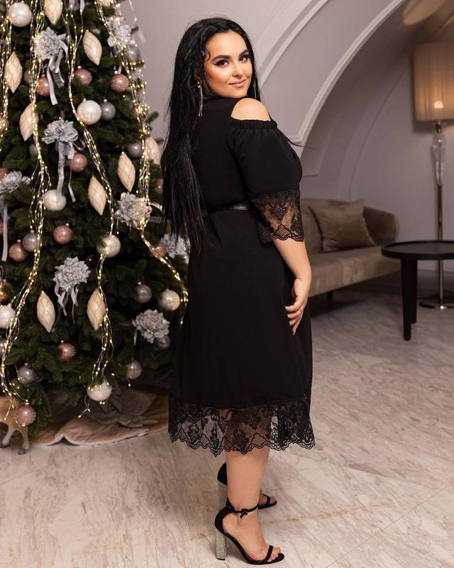Сукня Мод 6607 Цена 1340грн Ткань: креп дайвинг + дорогое кружево Размеры: 50-52,54-56,58-60 Цвет черный пояс +100грн