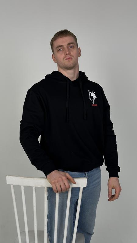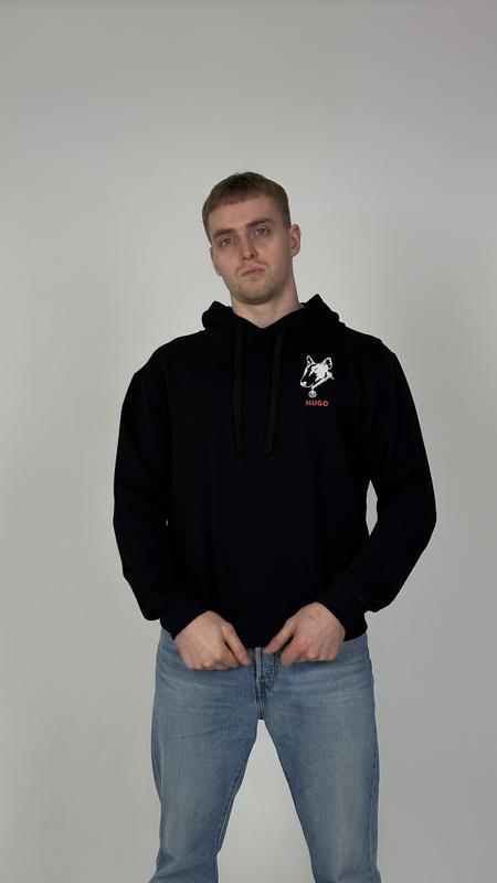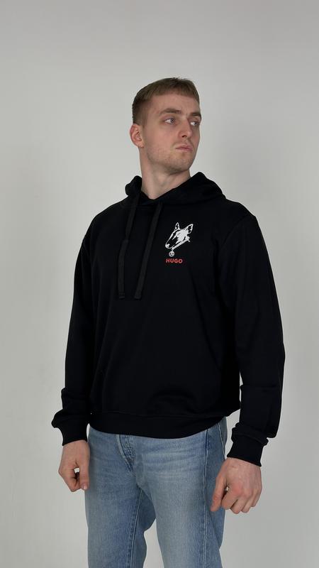 Кофта с капюшоном из коллекции HUGO. Модель из дышащего хлопкового материала. - Свободный крой, который обеспечивает полную свободу движения. - Длинный рукав. - Крой рукава с опущенной линией плеча не ограничивает подвижность. - Капюшон на шнурках обеспечивает дополнительное тепло. - Модель с принтом. - Рукава и нижний край обработаны удобной эластичной резинкой.