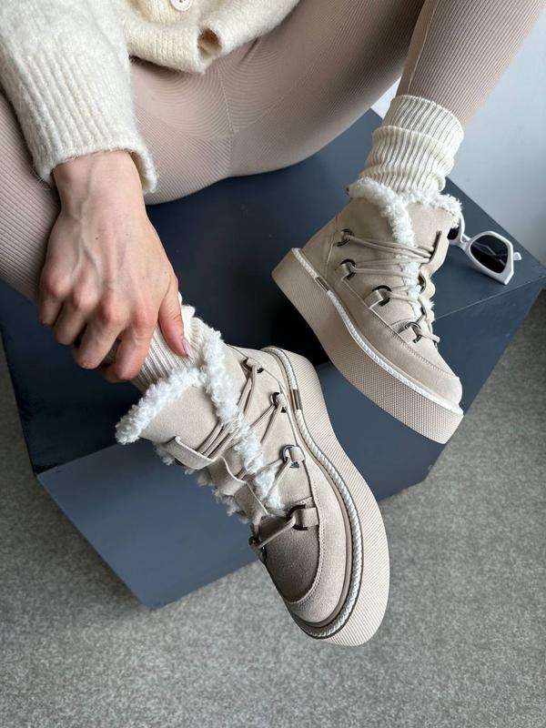 Размеры: 36-41 Цвет: песочный Материал верха: натуральная замша Внутри: полушерсть Материал подошвы: полиуретан Производитель: Украина "36-23см 37-23,5см 38-24-24,5см 39-25см 40-25,5см 41-26см