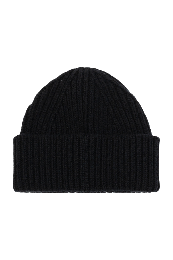 Black hat from Golden Goose. Crafted from wool in a rib-knit design, this item showcases a black and white logo patch.