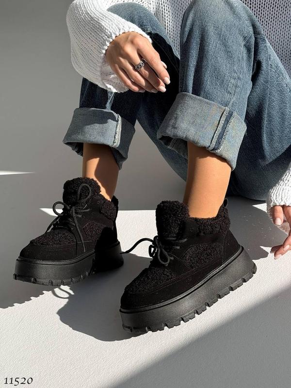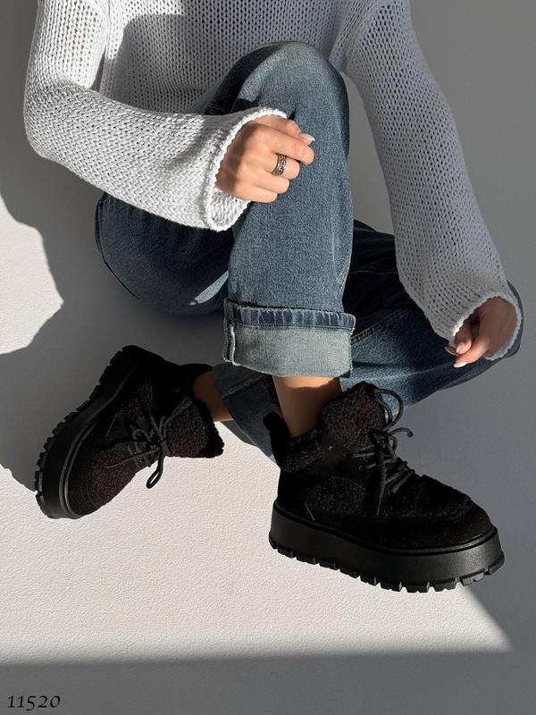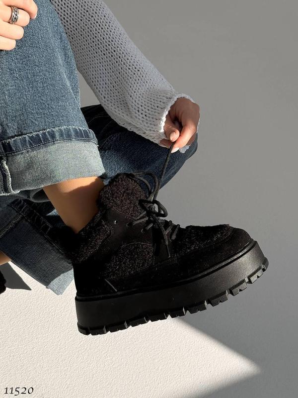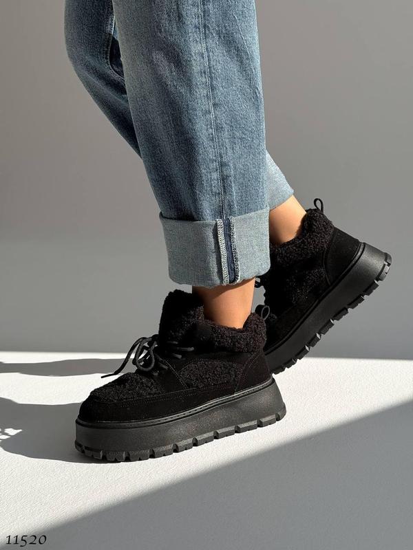 Женские зимние ботинки из натуральной замши черного цвета, высота платформы - 4/5 см. Размеры: 36= 23 см 37= 23,5 см 38= 24 см 39= 24,5 см 40= 25 см 41= 25,5 см