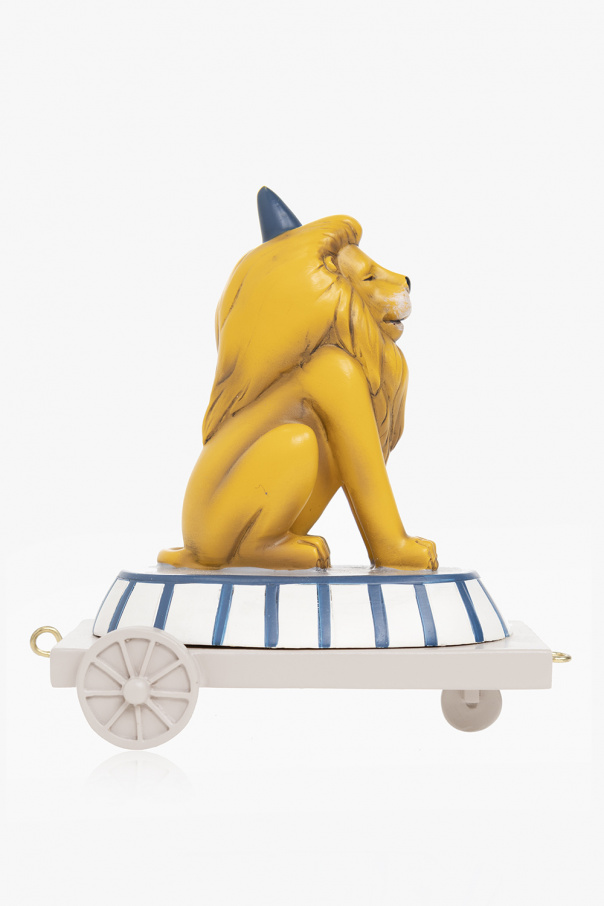 Multicoloured birthday train from Konges Slojd. This uniquely handcrafted item will dress every birthday table with stylish finesse, and is usable for every age. It showcases a Pierrot walking with a lemon, a goose, a circus tent, a lion and a monkey. The set also includes candleholders and numbers.