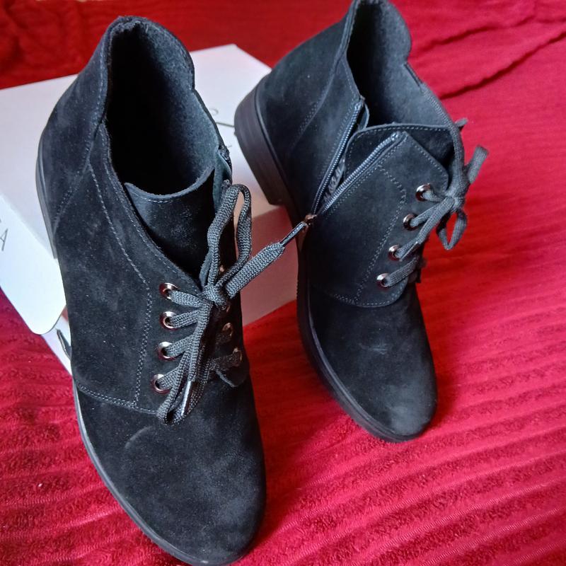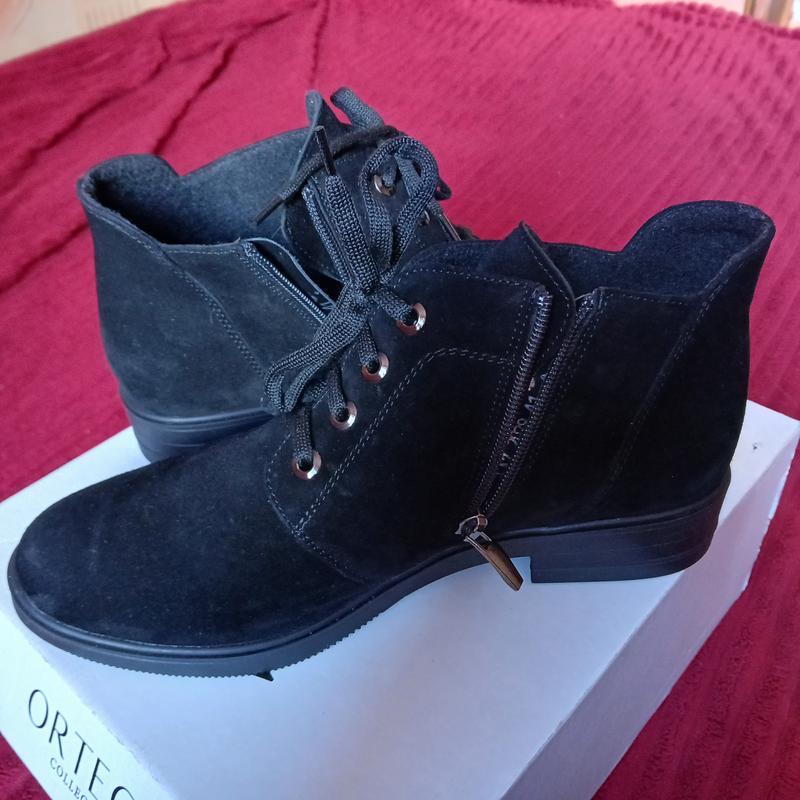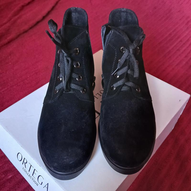 Жіночі черевики "Ortega", 41 розмір. Натуральний замш. Тепла підкладка. Устілка 27 см. Застібка "блискавка" + шнурівка. Легка підошва з невеликим каблучком (2 см). Зручні та невідчутні на ніжках. Абсолютно нові!