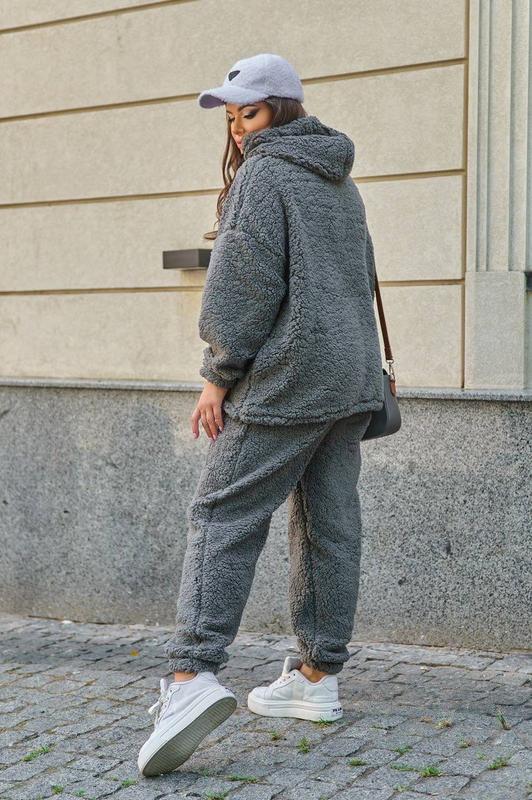 7кмод 🤎 Костюм Тедді 🤎 Арт 969⚡️🧸 ▪️Матеріал: хутро-флис (тепла, мʼяка, якісна тканина, гарно тягнеться) 🕊️🫶🏻 ▪️довжина худі 70 см. Довжина ▪️рукава від шиї 75 см. Низ рукава на гумці. ⛓️💕 ▪️ВНизу худі є тонка гумка, яку можна потягнути з обох боків і зібрати низ . 👛👍🏻😋 ▪️Штани висока посадка 🤎✨ ▪️Пояс на гумці. Низ на резинці🎀💫 🔝1 р - 42-54: ОГ 120, ОС 90-104 👑2 р 56-62: ОГ 140, ОС 105-124 🌸3 р 66-70: **********