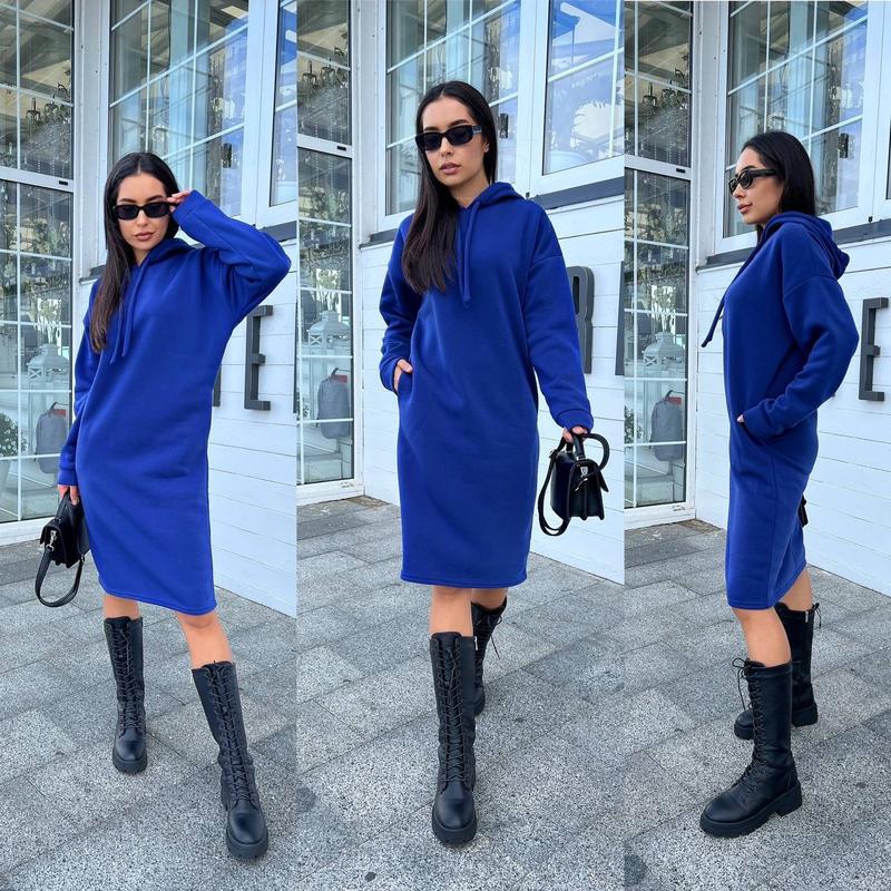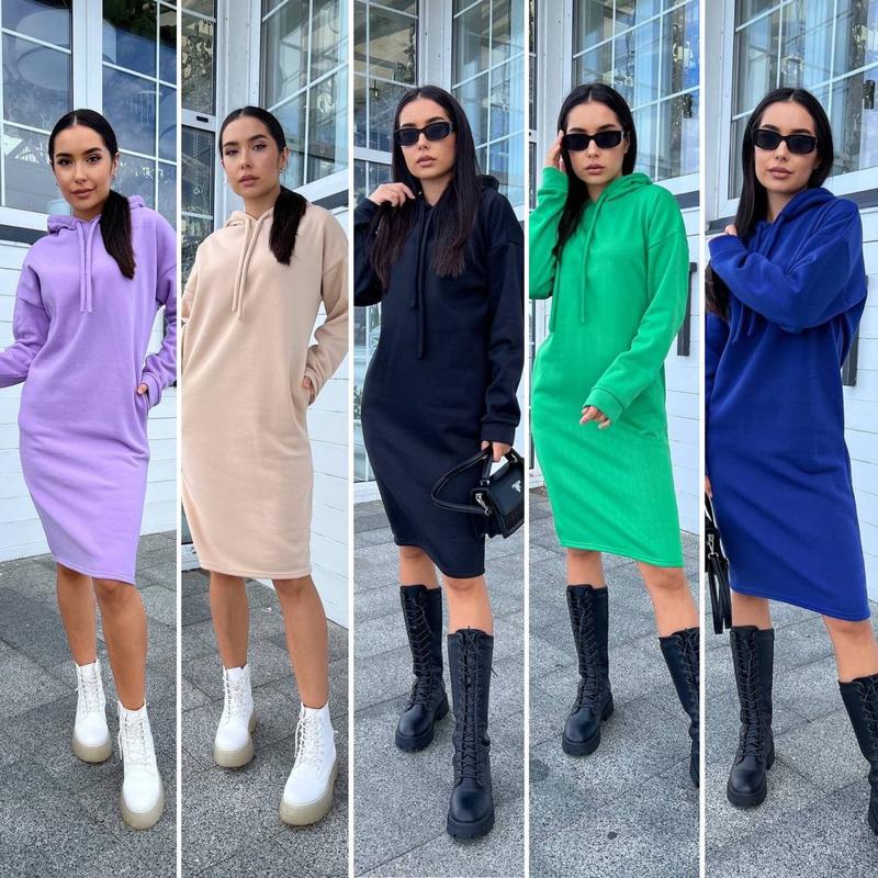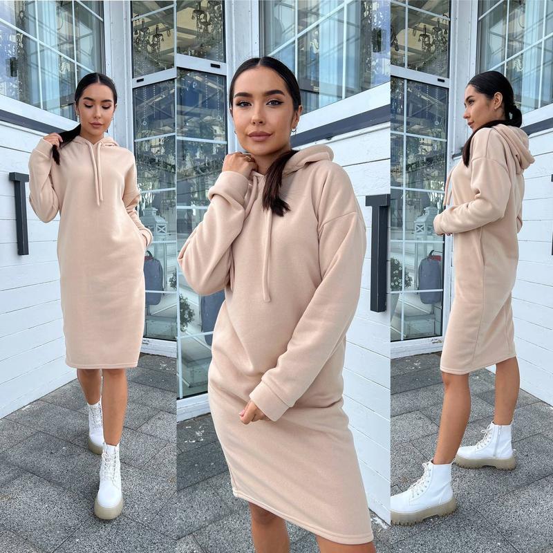 На суботу в кількості 💥 Топова Новинка 🤩 Мод :576 Тепле Плаття З капюшоном! Стильне, Комфортне, Мега Круте! У топових відтінках 💓 Розміри 42-46,48-52 Тканина Тепла тринитка на Флісі люкс 🔥 кольори - ,Мокко,Чорний ,Біж,Трава,Малина,Електрик