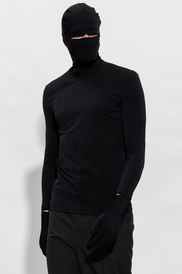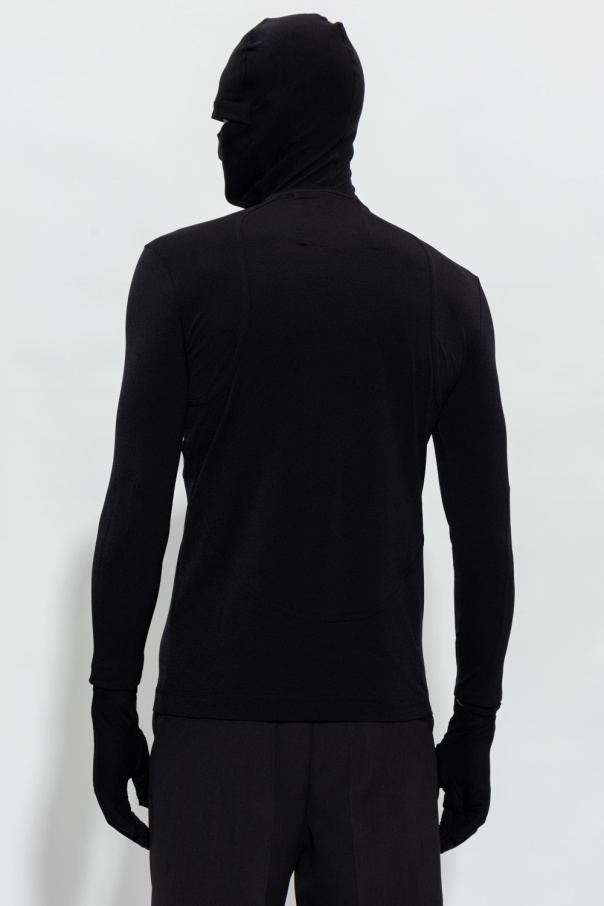 Black T-shirt with balaclava and gloves from Givenchy. Crafted from stretchy material, this garment features an incorporated balaclava and gloves.