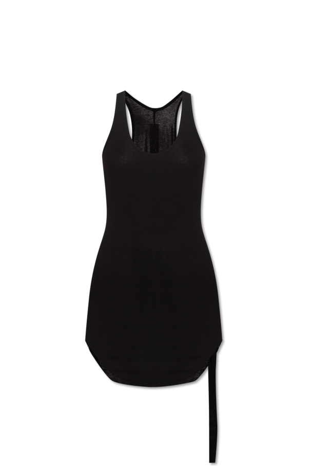 Black ‘Drk’ tank top with a round neck from Rick Owens DRKSHDW. Made from GOTS-certified organic cotton, this style showcases the brand\'s signature central seam at the back and a raw-trimmed hem with a logo-embroidered strap.
