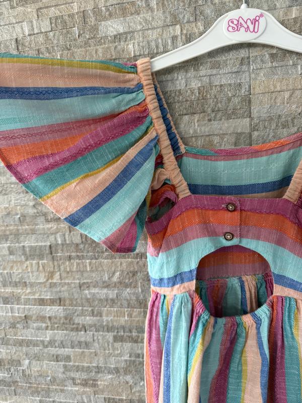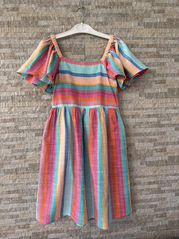 Сукня 💃 в райдужну смужку з рукавами-янголятами від ✨ Next ✨ на дівчинку 6 років, 116 см В ідеальному стані 100% бавовна