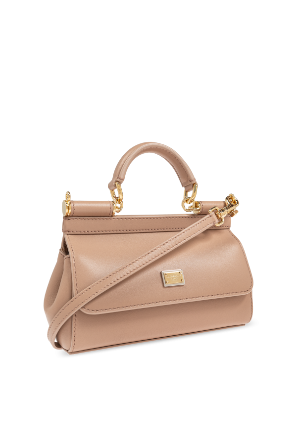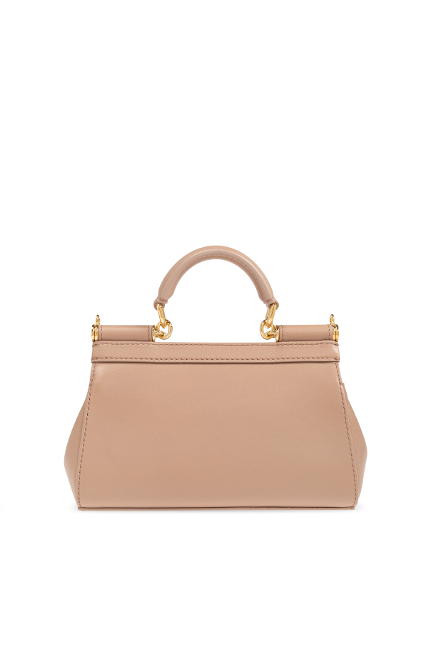 Introducing the Sicily Small Shoulder Bag from the exclusive collection of Dolce & Gabbana. This exquisite piece is a testament to the brand\'s renowned craftsmanship and timeless elegance. Crafted from smooth, premium leather, the Sicily Small bag features a delicate blush pink/beige hue that exudes sophistication. Its classic rectangular shape, accentuated with gently rounded edges, offers a refined silhouette suitable for any occasion. The bag boasts a versatile design with a detachable, long shoulder strap for crossbody convenience and a sturdy, short handle for handheld elegance. Gold-toned metal accents, including clasps and closures, add a touch of opulence, while a small metal plaque bearing the brand\'s logo and the inscription \"Made in Italy\" adorns the front, underscoring its prestige. Inside, the bag is lined with a distinctive leopard print fabric that injects a bold character into its interior. The magnetic closure ensures easy access, and the thoughtfully designed interior features a main compartment and a slip pocket, perfect for carrying essential items. Why You Should Buy This Product Exquisite craftsmanship by Dolce & Gabbana, a world-renowned brand. Premium leather construction for durability and elegance. Versatile carrying options with a detachable shoulder strap and a sturdy handle. Opulent gold-toned metal accents for a luxurious touch. Distinctive leopard print lining that adds bold character. Compact size ideal for carrying essential items with ease.