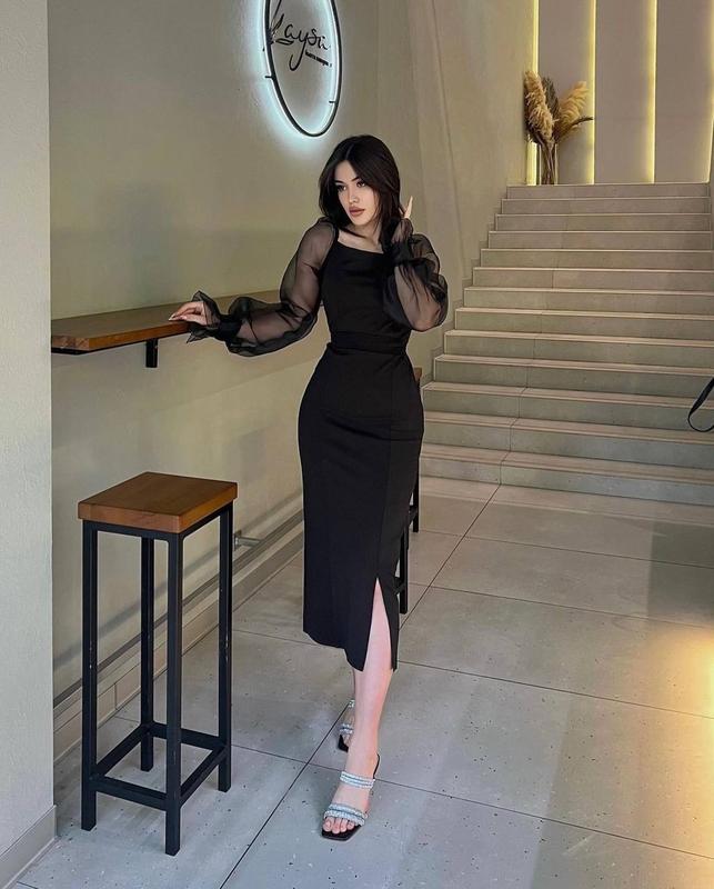 Сукня Мод.256 Цвет: черный Размеры: 42-44, 46-48 Ткань: креп дайвинг + органза Цена: 660 грн Платье в котором ты будешь выглядеть на миллион 😍 Идеально подчеркивает фигуру, а объемные рукава добавляют изысканности в ваш образ🥰