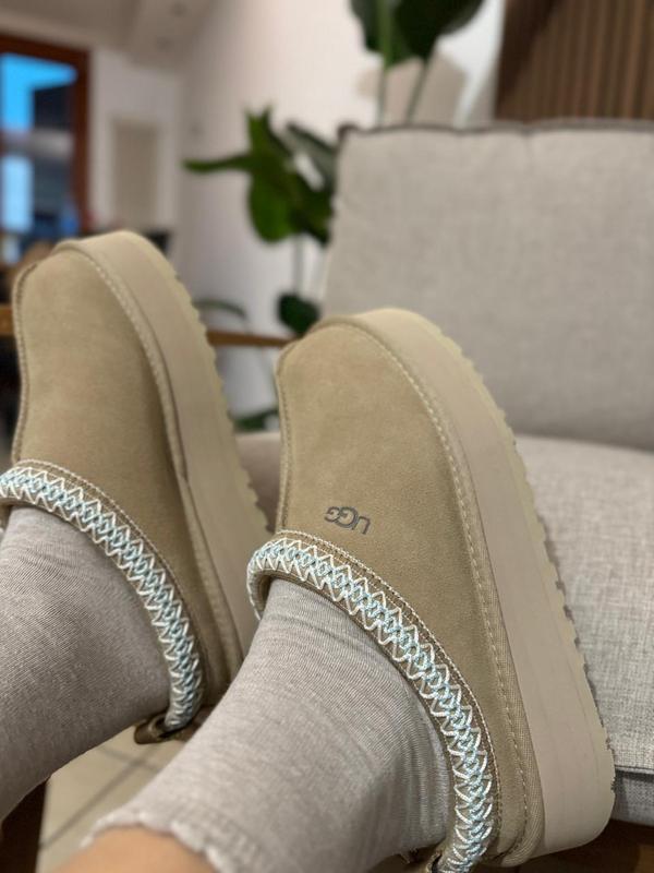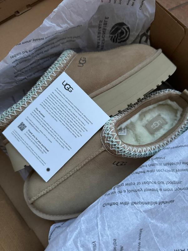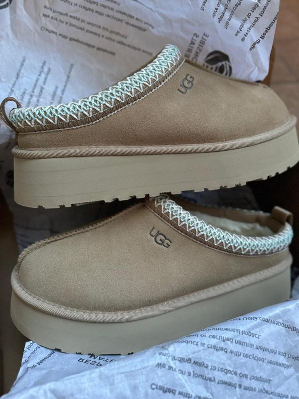 ОРИГІНАЛ! Пантофоли UGG TAZZ platform ● В наличии размер 41( маломерят) Цена 8060 грн Замшевый верх Тесьма UGG® Tasman (70% переработанный полиэстер, 30% вискоза) 20% подкладки из лиоцелля (10 мм) Стелька UGGplushTM 80% регенерированной шерсти и 20% лиоцеля (10 мм) Подошва EVA Тканевая кайма, изготовленная на 100% из переработанных полиэфирных волокон Высота платформы 3,8 см Логотип UGG® с терможатием