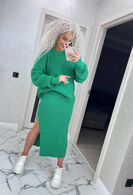 РАЗМЕР: от 46 до 56 💓 💓💓 ✅код 255 ✅ ЦВЕТ: черный, зеленый, серый, изумрудный, пудра, капучино ✅ Стильный женский трикотажный костюм отлично подчеркнет ваш безупречный стиль. Костюм состоит из вязаной юбки и объемного свитера. Изюминкой этой модели есть длинная юбка с глубоким разрезом. Костюм выполнен в трендовых цветах. Одна из лучших моделей нашей коллекции! Добавьте в свой гардероб стильную новинку!