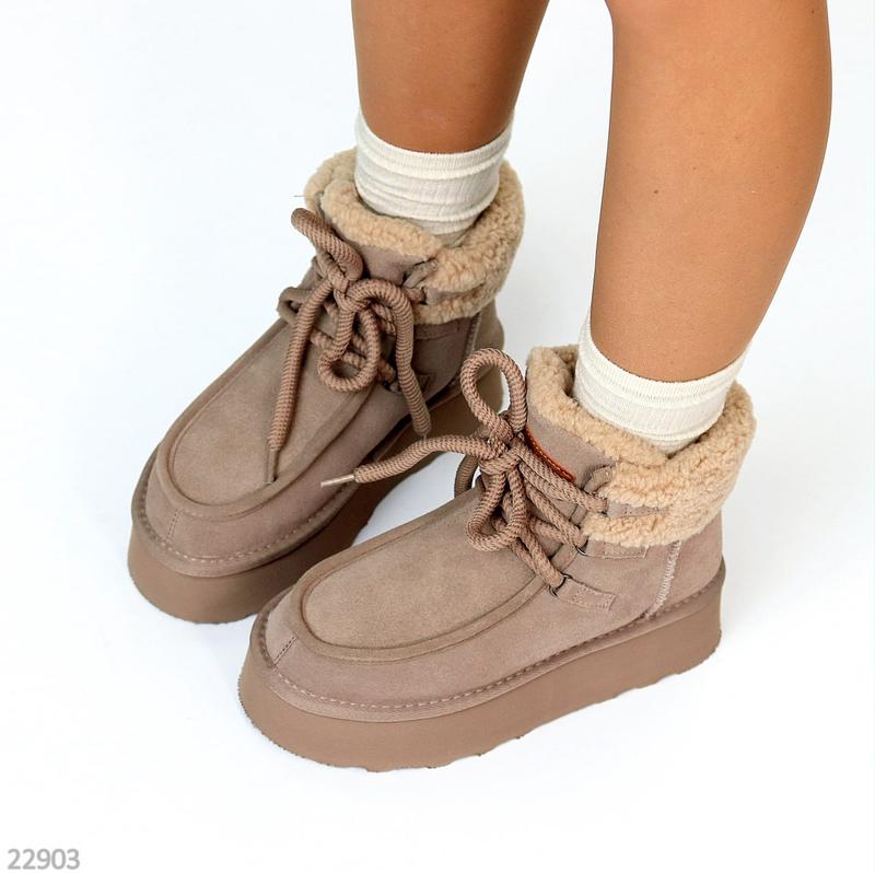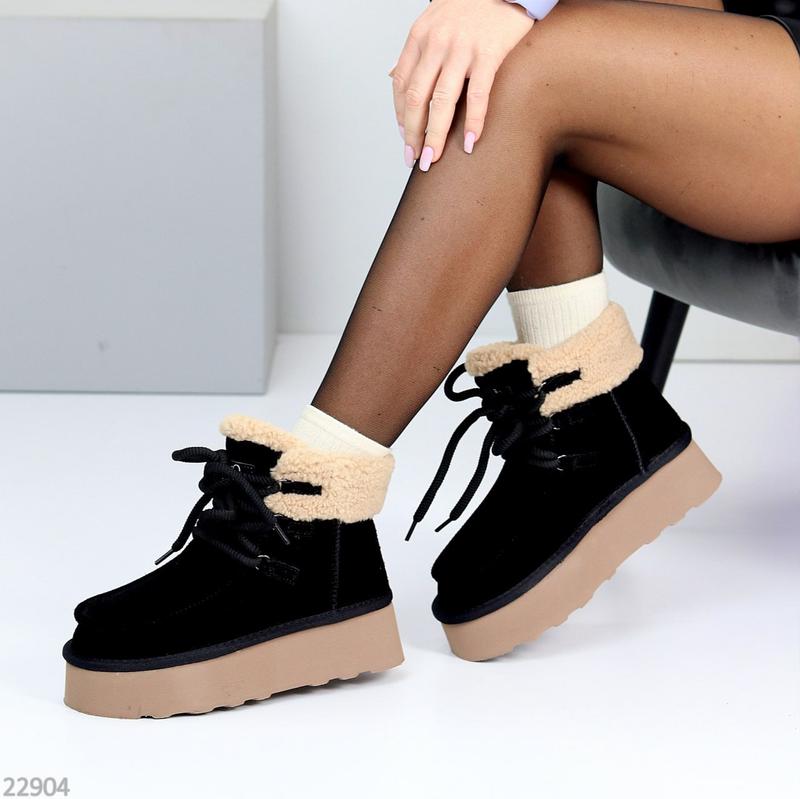 Код 22902 черный, 22903беж, 22904 черный беж, 22905 шоколад, 22906 салон нат кожа, 22997 светлый беж Размеры 36-41 Угги на шнуровке "Besstor" Материал - НАТУР.ЗАМША Внутри - Экомех Сезон - Зима Цвет - Черный Высота от пятки - 12см Подошва - 5см/4см Производитель - Фабричный Китай На среднюю стопу Размер в размер 36-23,5 37-24 38-24,5 39-25,5 40-26 41-26,5 1780 грн