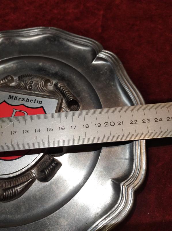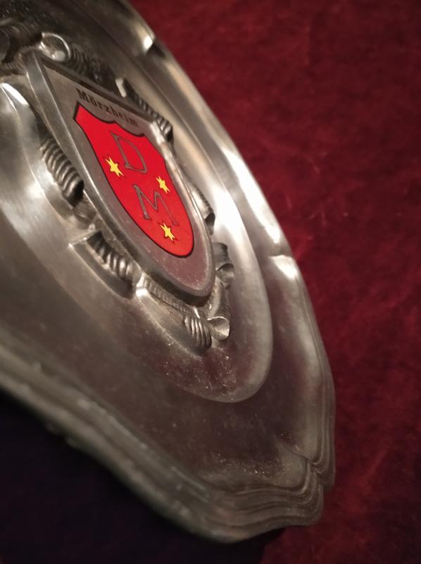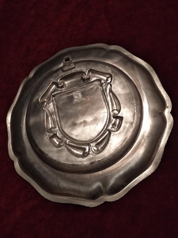 Сувенирная оловянная настенная декоративная тарелка, ретро. Вес 750гр. Германия.
