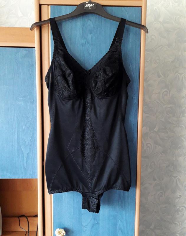 Хочу предложить Вам приобрести боди, комбидресс с очень сильным утягивающим и моделирующим изящную фигуру эффектом от европейского производителя. Комбидресс в очень хорошем состоянии. Материал очень упругий благодаря чему достигается сильный утягивающий и моделирующий эффект. Широкие регулируемые брители. Застёжки: 4 крючка в два ряда по ластовице. Указываю несколько размеров поскольку размер не указан и материал тянется. Размер: 46?-48-50??, а для уточнения размера смотрите замеры: длина от линии плеча и до нижней точки ластовицы в спокойном состоянии 75см; первый замер в спокойном состоянии, а второй в растянутом: длина от подмышки, по боковому шву 48см; длина спереди, от выреза и до нижней точки ластовицы 57см; длина по спине, по средине 51см; высота чашки 20см; ширина чашки 20см; первый замер в спокойном состоянии, а второй в растянутом: полуобхват от подм. до подм. 42-50см; полуобхват под грудью 38-46см; полуобхват по талии 36-48см; полуобхват по бедрам 44-58см; полуобхват выреза по ноге 22-32см. ширина ластовицы 7см; ширина брители 2см.