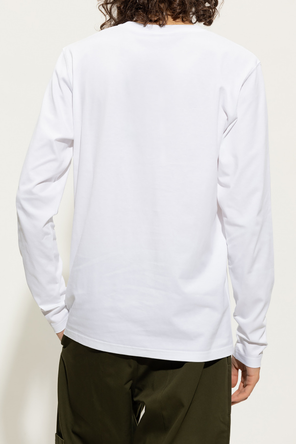 White ‘Niels’ crewneck T-shirt from Norse Projects. Made from cotton, this style features a regular fit, long sleeves and a logo patch at the bottom hem.