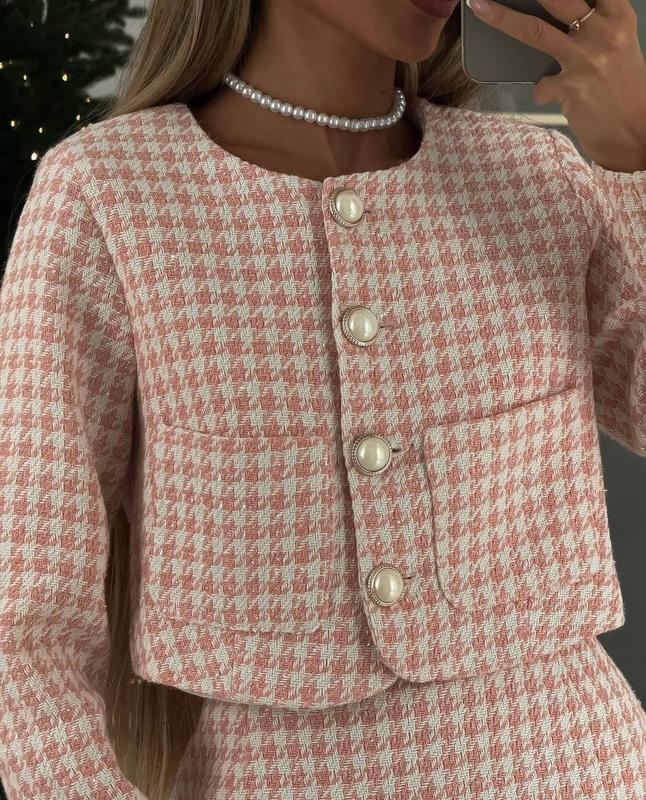Добавили новый цвет 🖤 Костюм (жакет+юбка) Модель 075 ▪️Размер: 42-44, 46-48 ▪️Ткань: твид Турция ▪️Цвет: серо-белый, пудра Жакет без подкладки, с плечиками. Юбка застегивается на потайную молнию.