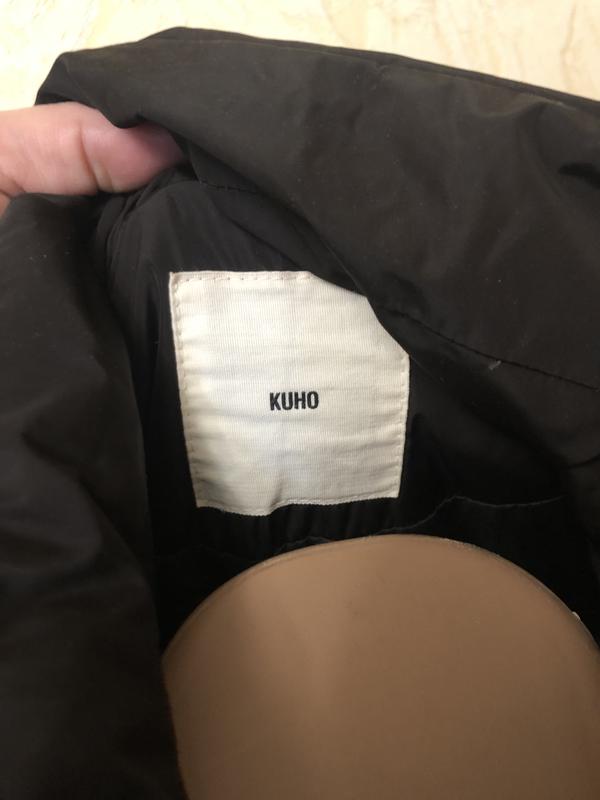 Шикарный брендовый женский пуховик фирмы KUHO. Очень лёгкий. Цвет шоколад и чёрный. Интересное сочетание ткани. Бирочка с составом ткани вытерта. Цена нового больше 1000 Є Носили очень мало В остальном всё в идеале!
