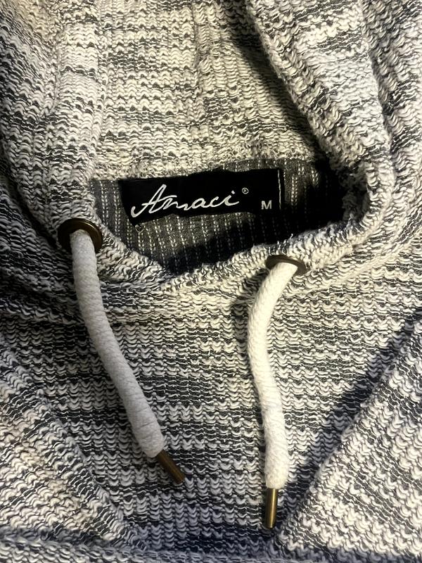 Мужской свитер бренда - Amaci Свитер с регулируемым капюшоном. Также можно договориться о цене, чтобы обе стороны были удовлетворены. Размер: M Замеры: - длина (от плеча до низа): 65 см - Ширина (плечи): 50 см - Ширина (грудная клетка): 45 см - длина рукава: 53,5 см