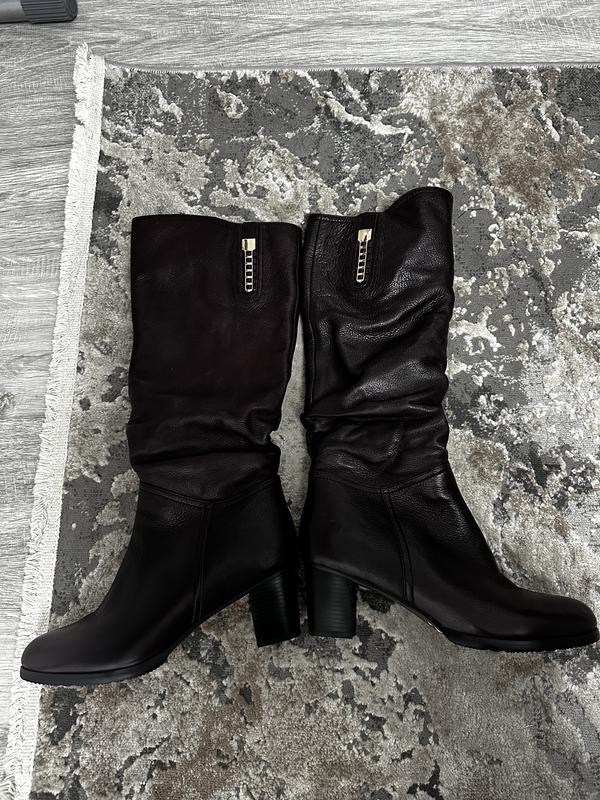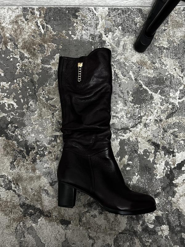 Сапоги в цвете бордо. 41 размер. Обутый на 174 роста. Каблук 5-7 см Натуральная кожа. Зима/ холодная осень