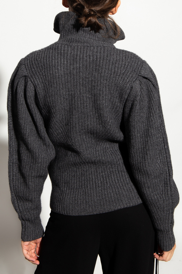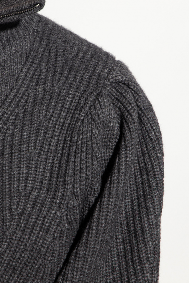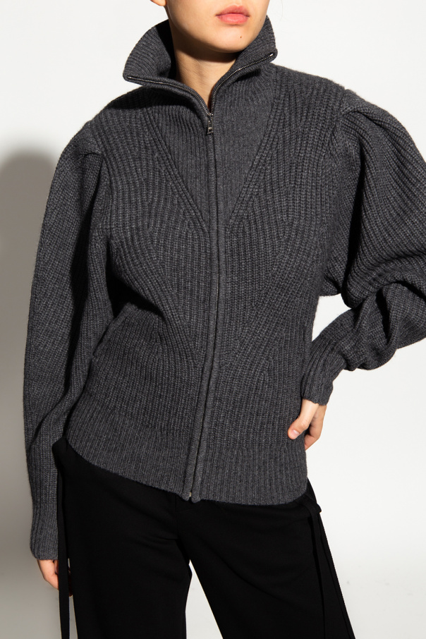 Grey cardigan from Isabel Marant. Crafted from a wool and cashmere blend with ribbed detailing, this style features a zip fastening, two zipped pockets and long sleeves.