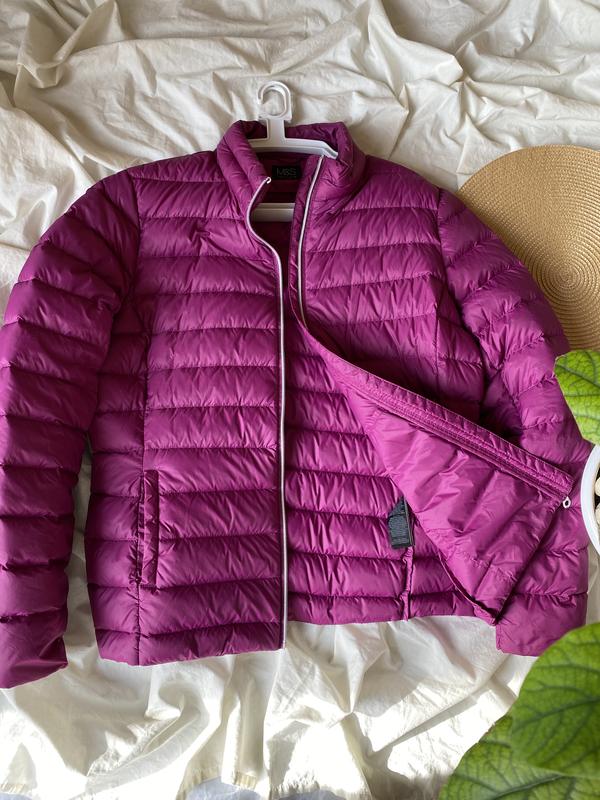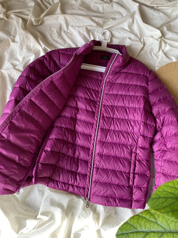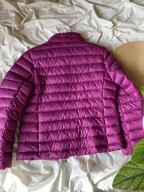 Легкий микропуховик яркого цвета, теплый, невесомый на теле. Размер указан uk14 eur 42 (пог53/ плечи 39.5/ длина 63.5/ рукав 63.5 см., от горловины 72.5/ низ 55.5) в горловине прячется капюшон, ткань влагоустойчива