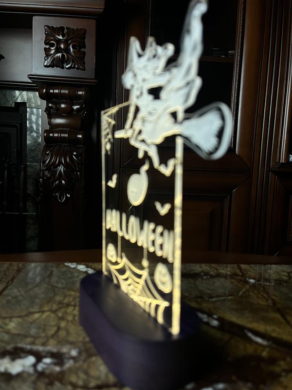 🧙♀️ Світловий нічник “Halloween” — створений, щоб додати магії у вашу осінню атмосферу! Акрилова фігурка з чарівницею на мітлі, гарбузиками, павутинками та кажанами світиться теплим жовтим сяйвом, створюючи справжній ефект містичного вечора Геловіну 🎃 💡 Ідеально підходить: — для декору кімнати чи святкової вечірки; — як подарунок для поціновувачів Геловіну; — щоб додати затишку у темні осінні ночі. 🔹 LED-підсвітка з м’яким теплим світлом 🔹 Стильна дерев’яна основа 🔹 Працює від USB або акумулятора(залежно від моделі) 🔹 Розмір: компактний і зручний для будь-якої полиці 👻 Додайте трохи магії у свій дім — нічник “Halloween” вже готовий створювати святкову атмосферу!