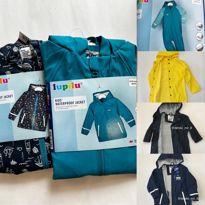 Отправка каждый день с Киева Курточка дождевик на флисе Lupilu Также есть без флиса, пишите размер отправим наличие 86\\92 р Полукомбинезон 400 грн Морские Синие Зелёные 98\\104 р Курточки 450 грн Киты Синяя с осьминогом Зеленая Дино Свето голубая Штаны 500 грн Спайдермен Щенячий патруль 110\\116 р Куртка 450 грн Киты Светло голубая Комплект спайдермен 1100 грн Полукомбинезон 450 грн Темно зелёные Без флиса 300 - 350 грн - Подкладка из теплого флиса - идеально подходит для переменчивых дождливых дней. - Ветрозащита и водонепроницаемость благодаря проклеенным швам. - Со светоотражающими декоративными элементами из светоотражающего материала 3M Scotchlite™. - Трехсекционный капюшон с утепляющей флисовой подкладкой. - Молния во всю длину с защитой подбородка. - С боковыми карманами - Эластичный капюшон и подол рукавов. - С высококачественной переработанной молнией бренда YKK. Полукомбинезон - Регулировка по длине, эластичные лямки. - Боковые кнопки для регулировки ширины. - Штрипки внизу штанины. Отправка каждый день с Киева Доставка/оплата 1. Новая почта - оплата полная или наложкой по предоплате в 120 грн 2. Укрпочта полная оплата
