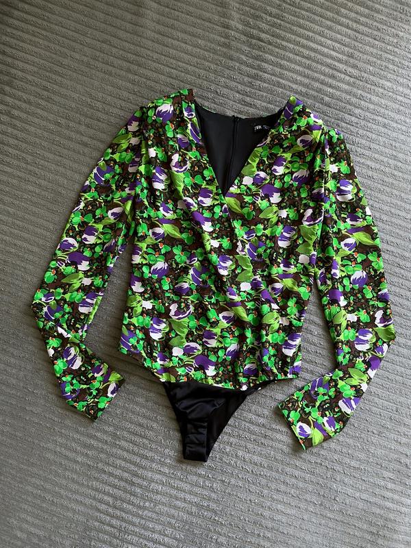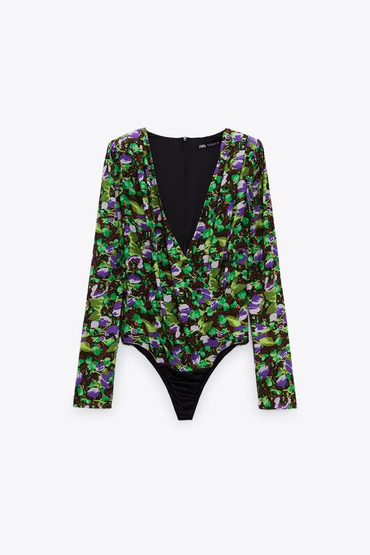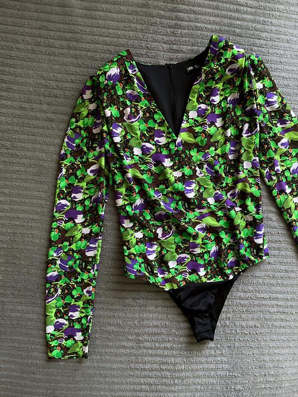 Шикарная блуза/боди от ZARA, из последних коллекций, размер указан S. Есть подплечники, внизу на кнопках, сзади замок. Сток, состояние новой вещи без недостатков, торга нет! От одной подмышки до другой ззади 39-40, спереди идет на запах;