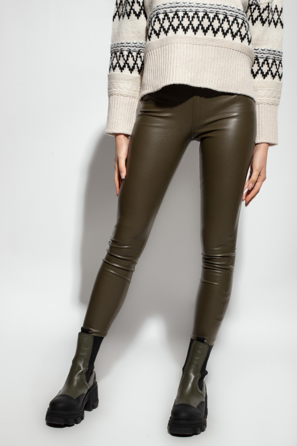 Khaki trousers from Rag & Bone. Crafted from vegan leather with a skinny fit, this pair features an elasticated waistband and two back slip pockets.