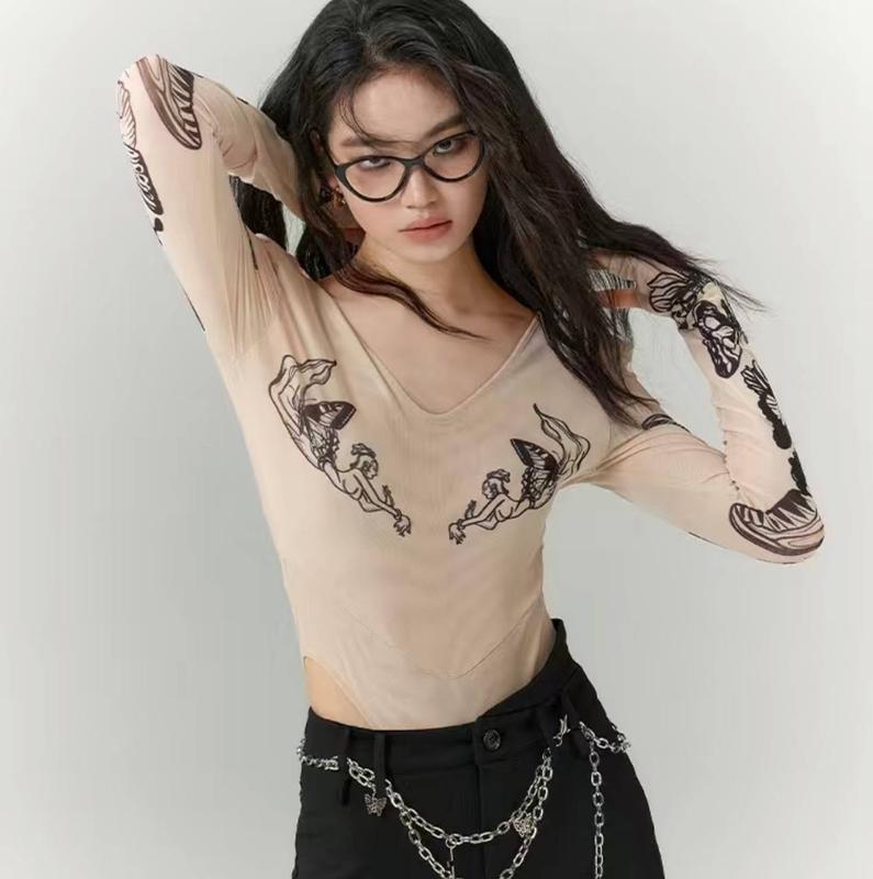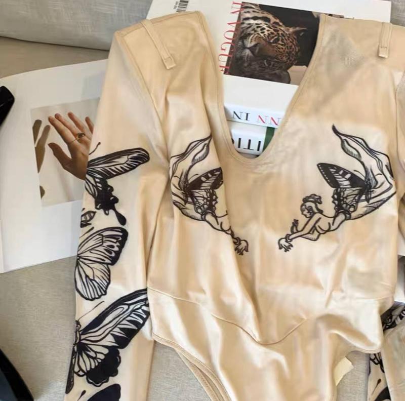 🔝🔝NEW COLLECTION 🖤🤍 Самый горячий тренд этого сезона - боди nude с тату принтами🔝🔝 Размер единый 42-46, длина 70-77см, рукав 61см 〰️Арт. 519 🏷 цена 486 ОРН