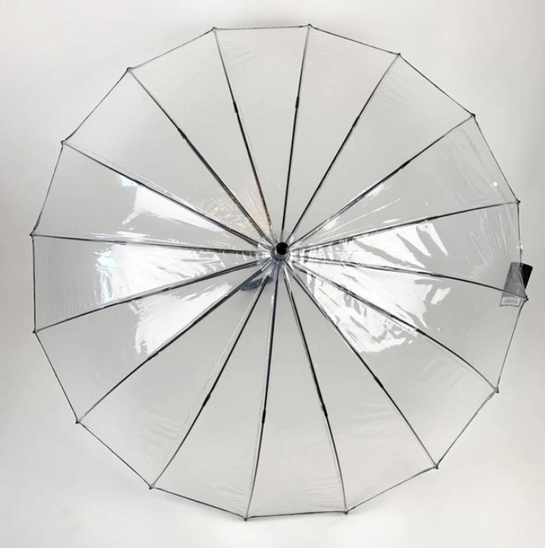 Зонт трость прозрачный купол 16 спиц без принта Ручка, окантовка черного цвета Полуавтомат: зонтик открывается нажатием одной кнопкой. Зонтик имеет 1 добавление. Ручка зонта имеет форму крючка. 1 цвет ручки: черный. Зонтик имеет систему "антивитер", препятствующую поломке зонтика при сильном ветре. Характеристики прозрачного купольного зонта: материал купола – поливинил; ручка – крючок, пластик; длина зонта в сложенном виде – 85 см. в раскрытом виде диаметр – 105 см Преимущества зонтика-трости 1. Прочность: так как у зонта-трости 1 добавления, этот зонтик прослужит гораздо дольше, чем сложенный. 2. Это не просто зонтик, это стильный аксессуар! С ним можно выделиться среди серых обычных складных зонтов. Зонтик трость сможет подчеркнуть индивидуальность и безупречный вкус. 3. Зонтик в виде трости обеспечит лучшую защиту от дождя (купол зонта больше в диаметре, а его форма обеспечивает быструю скатку капель воды).