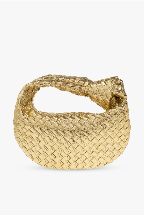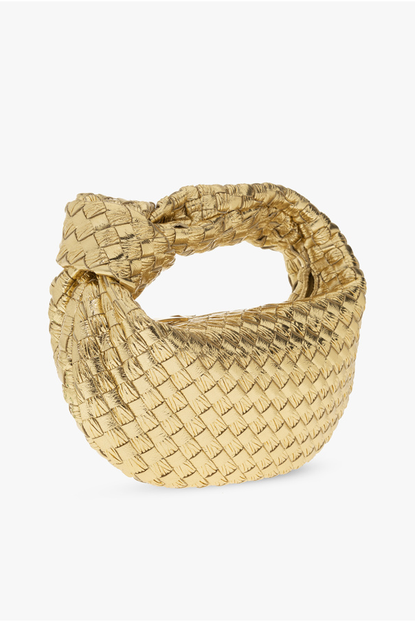 Gold-tone ‘Jodie Mini’ handbag from Bottega Veneta. Crafted from lamb leather with the brand's signature ‘Intrecciato’ weave, this design features a zip fastening, a knotted half-round handle, gold-tone metal elements and one internal compartment.