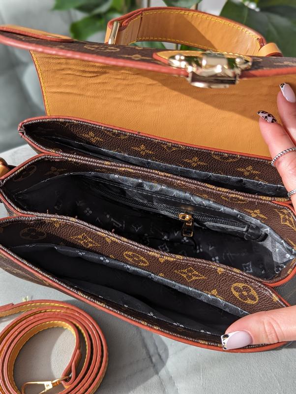 Сумочка великий саквояж КАЧЕСТВО ЛЮКС Размер : 27*17*11СМ Материал - «Эко» кожа Три головных отделения, отделение на молнии в середине дополнительно мини карман с логотипом. Вся фурнитура брендируется. Подкладка брендируется. Длина ремешка - 120 см КОД: коричневый+рыжий 20434-1 коричневый+черный 20434-2 черный стеганный 20434-3 моногам 20434-4