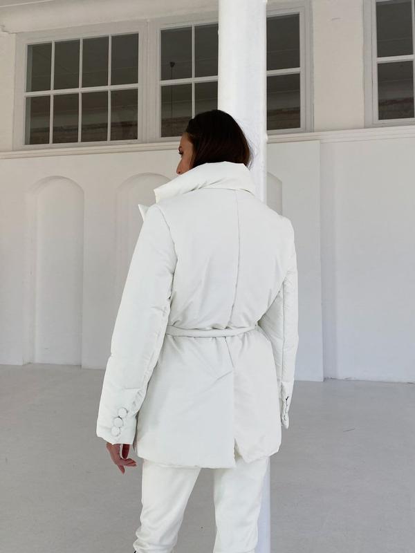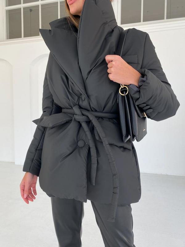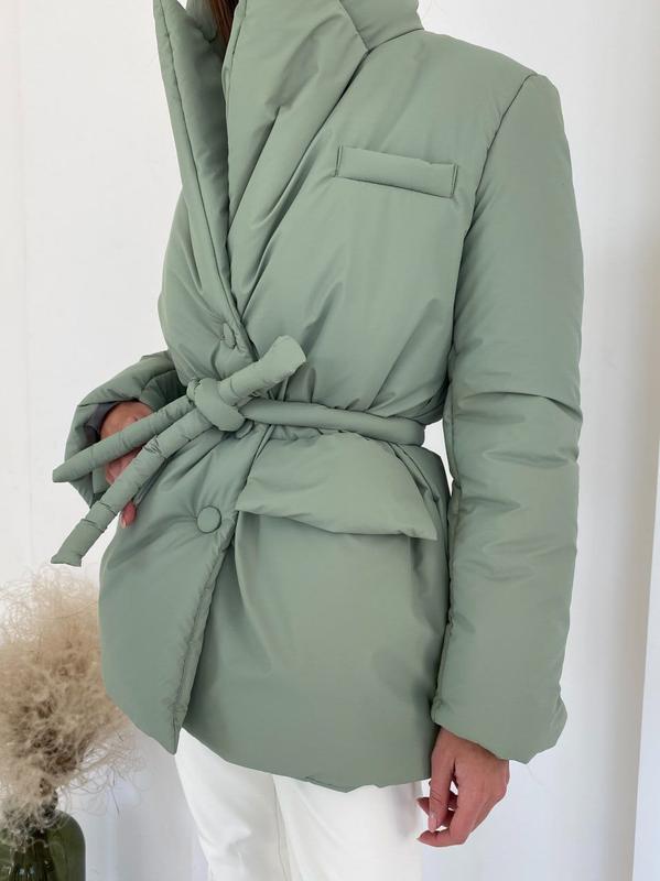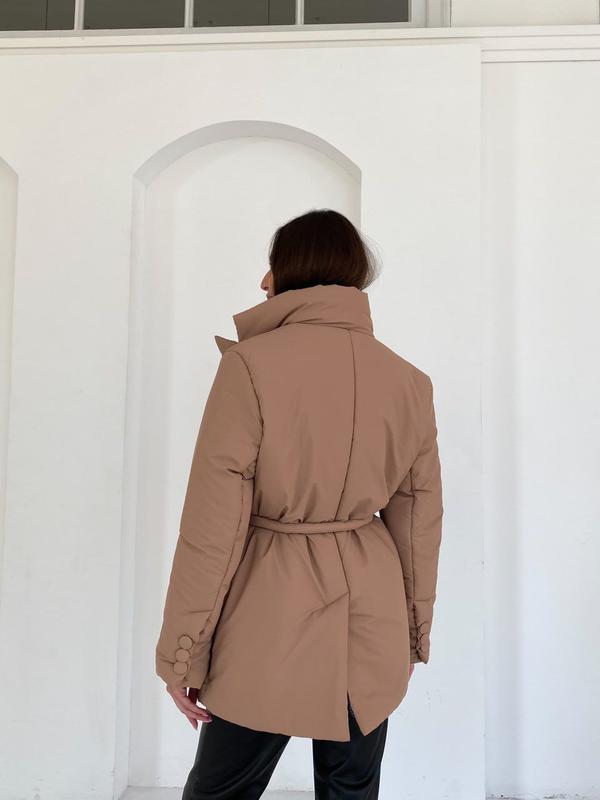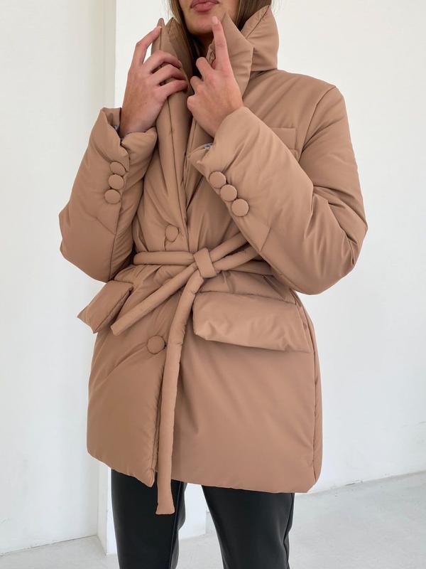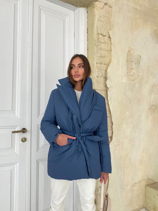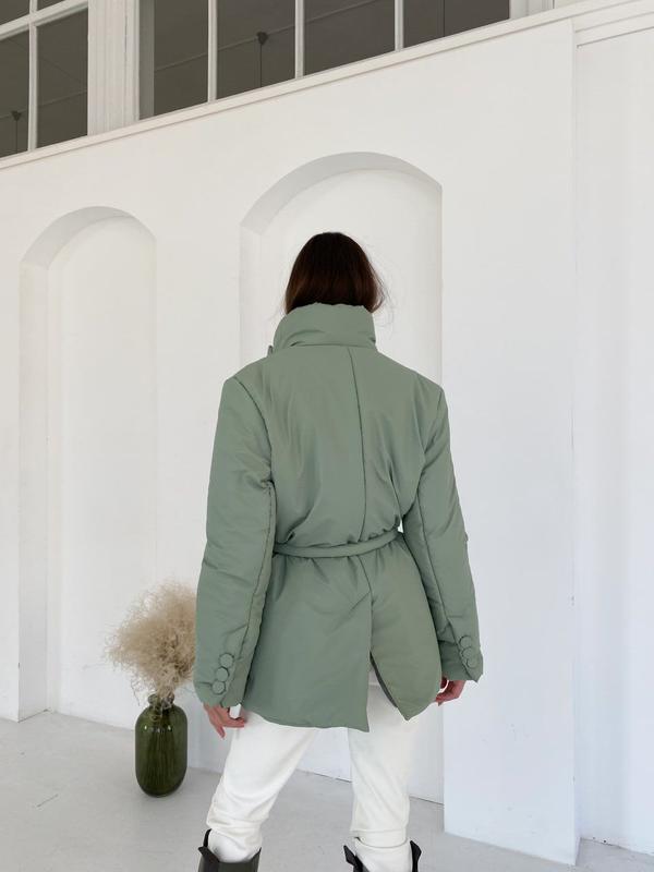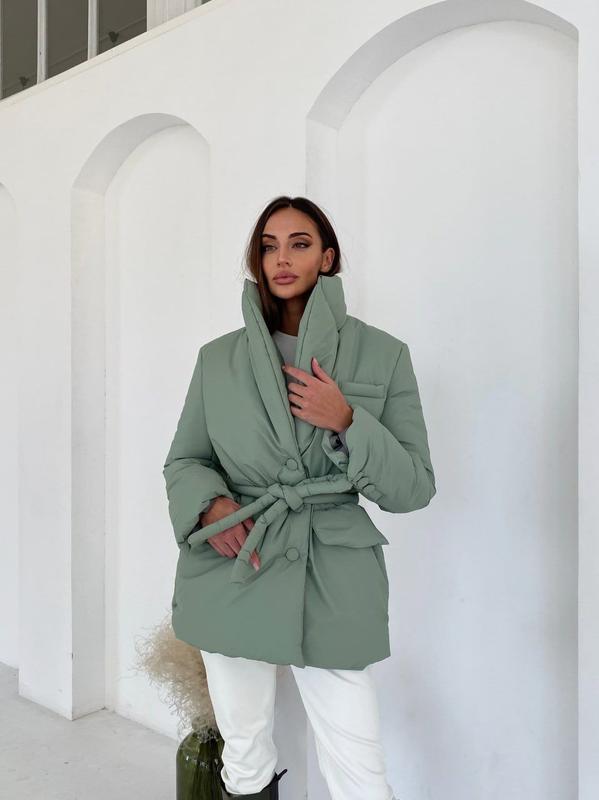 9263 🦍 Куртка Сезон ДЕМІ +ЗИМА Трендова куртка виконана у піджачному стилі! Тканина: Плащівка з просоченням люкс якості, матова Підкладка: нейлон Наповнювач: силікон 200 2 кишені Пояс у комплекті Ґудзики обтягнуті в основну тканину Розмір: one size Кольори: Атлантик, білий, кемел, оливка, чорний