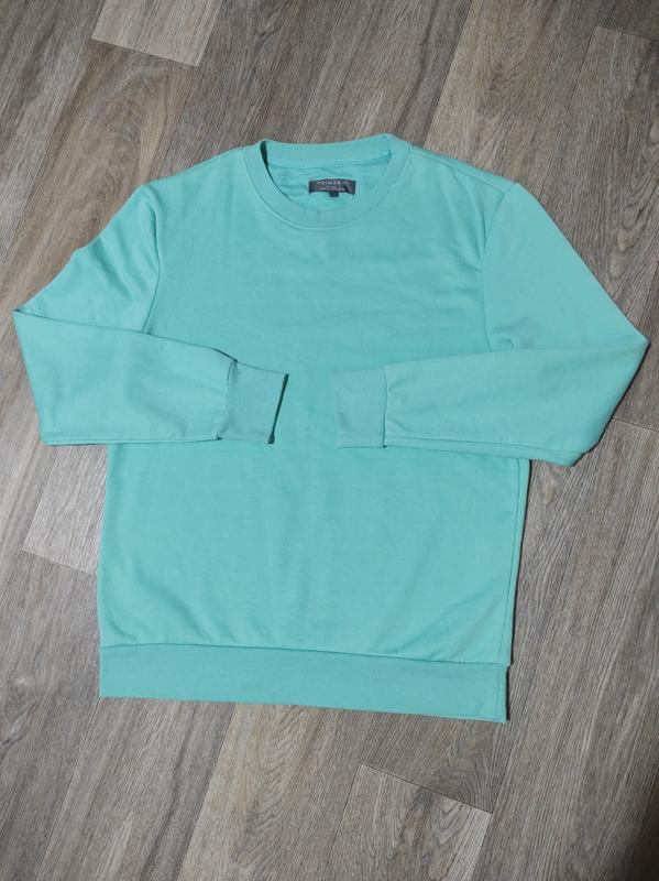 Мужской фирменный свитшот "Primark" в отличном состоянии, без дефектов. Материал средней плотности, с внутренней стороны есть небольшой начёс; состав: 52% хлопок/ 48% полиэстер. Цвет: однотонный бирюзовый. Плечи 49 ; рукав 65 ; пог 56 ; длина - 71,5 см.