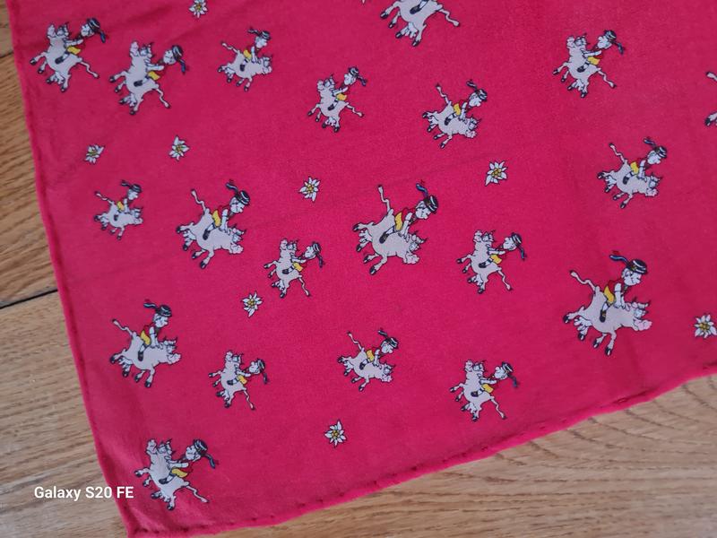 Теплого красного цвета платок, шов роуль 82 *79