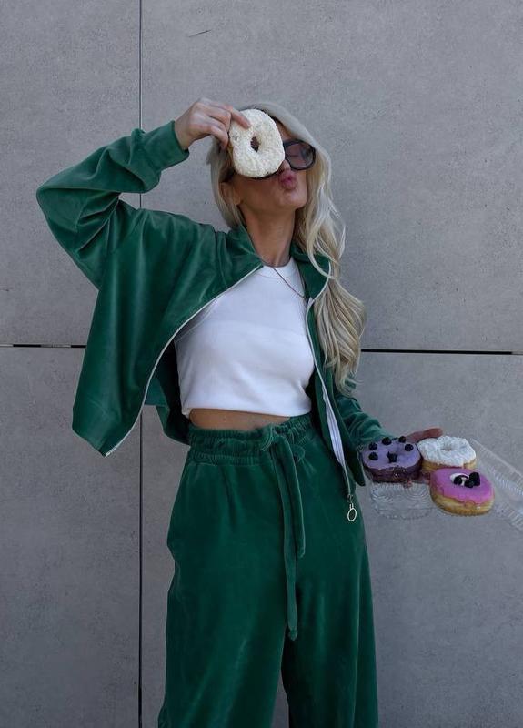 Наші плюшеві костюми які стали вашим фаворитом ❤️ ▪️Мод: 236 ▪️Розмір: 42/44 та 46/48 ▪️Тканина: велюр плюш ▪️Колір: чорний, малина, зелений, блакитний, пудра, сірий Костюм виготовлений з якісної м’якої і приємною на дотик тканини велюр плюш. Фасон костюма спортивний. Зручний і комфортний для прогулянок. З таким костюмчиком твій настрій буде завжди суперовий. ♥️